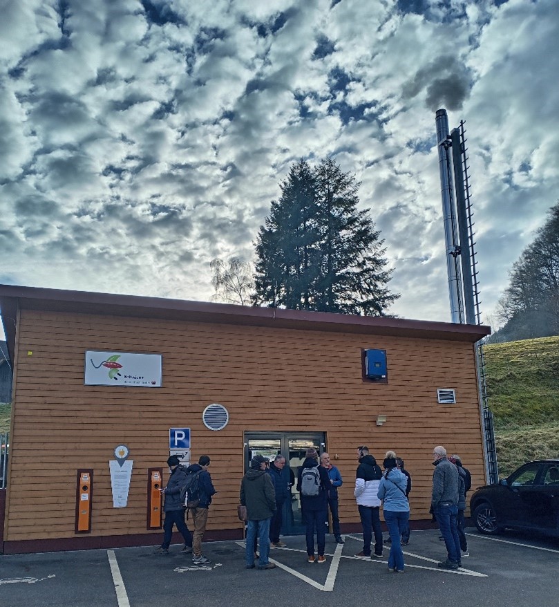 À Elzach, la visite a porté sur un réseau de chaleur biomasse d’environ 4,5 MW alimentant aujourd’hui 535 bâtiments, contre seulement 59 avant la création de la coopérative actuelle en 2015.